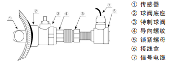 把锁紧螺母旋至传感器底部,将传感器旋入特制球阀,旋至球阀芯时,打开球阀,继续旋入传感器,直至传感器前端伸出管 道内壁,调整好传感器的角度,(两个传感器进线孔应同时向上或 向下),紧固好锁紧螺母,最后将线接好后,拧紧密封盖,以防漏水。