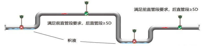 测量气体(蒸汽)流量时,涡街流量传感器应安装在管线的较高处。