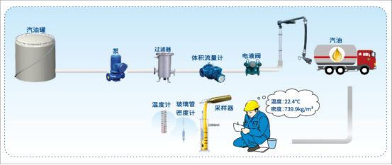 目前,销售公司的体积值一般采用体积流量计获取,温度、压力、密度均由人工测量换算获取。